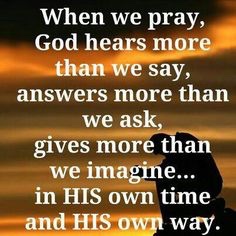 I give Him the glory – because of Who He is —not because He does things, which I know He does in His time. In the meantime I will worship Him because of WHO He is: the God who reigns, the Prince of Peace, the God who hears, the God who loves us, who sent His son to deliver us from sin and evil: and because of Jesus Christ, I can approach the throne of God in His name and know He hears me and hears the names of those I bring before His throne.